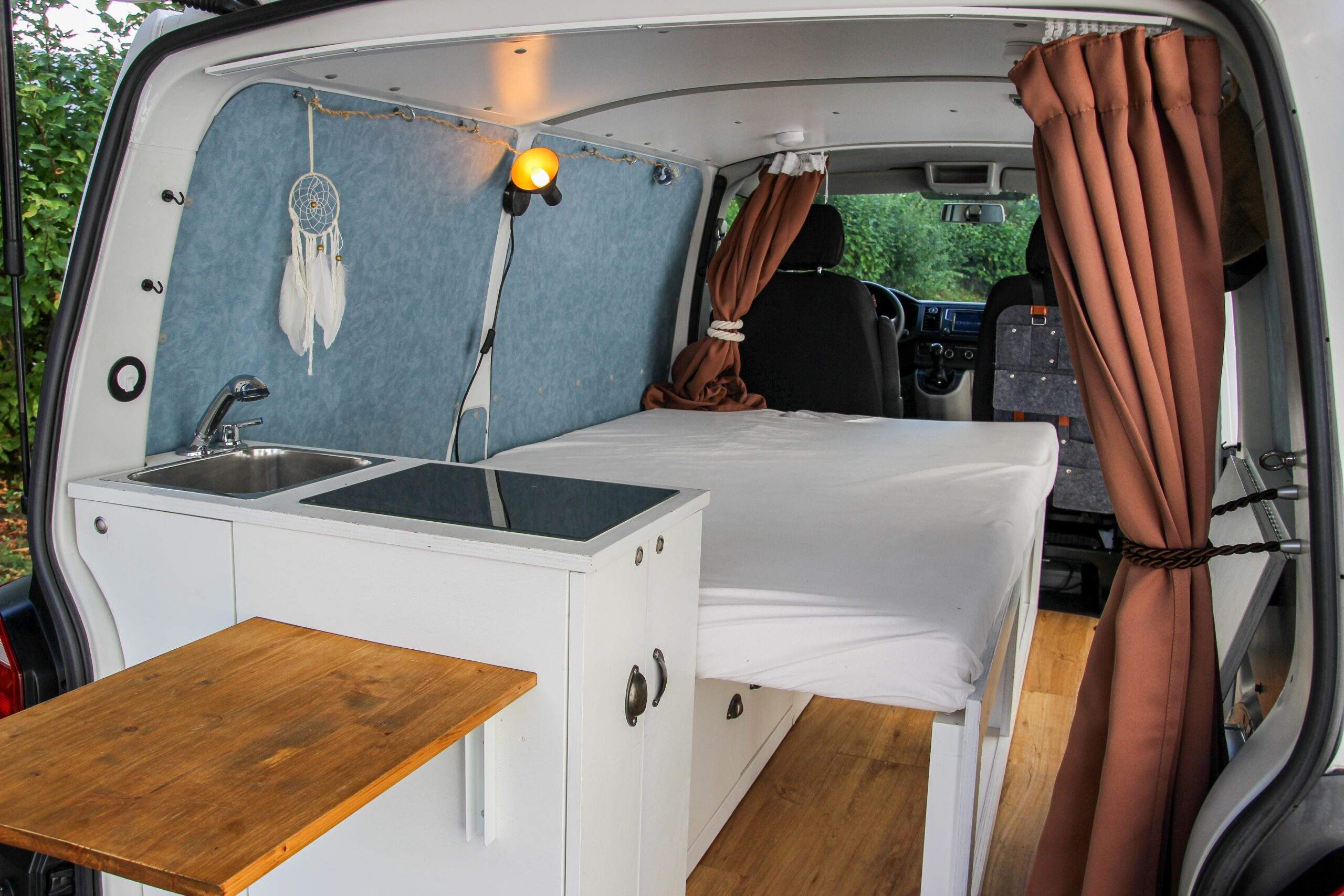 Ein gepflegter und durchdacht ausgebauter VW T6, perfekt für Singles oder Paare. Dank kompakter Abmessungen bleibt der Bus alltagstauglich: normale Höhe & Länge – passend für Parkhäuser und damit auch ideal für Stealth Camping.